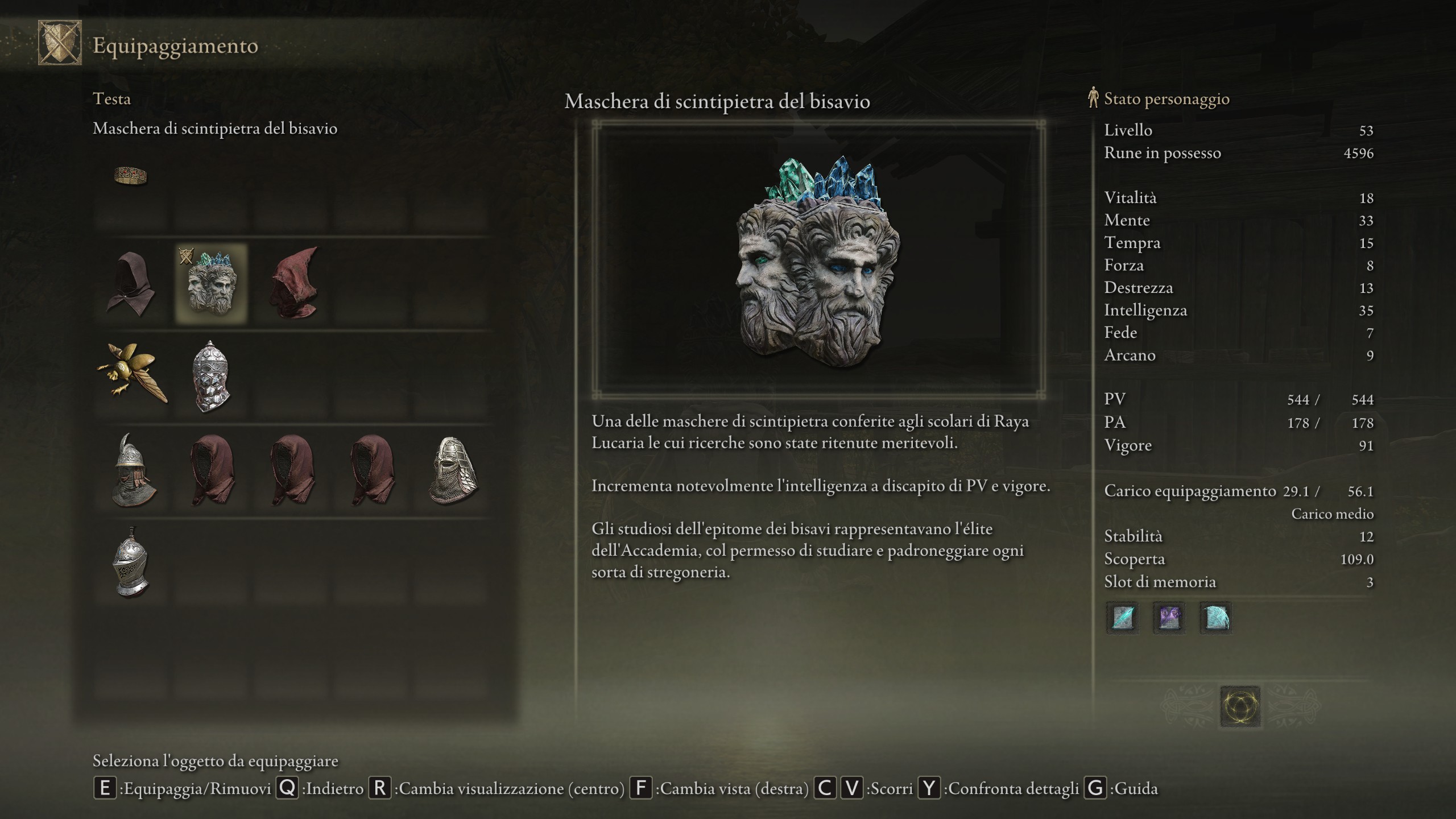 Come dicevamo ad inizio guida la Twinsage Glintstone Crown aumenterà la nostra intelligenza di ben 6 punti abbassando però stamina e salute del 9%.